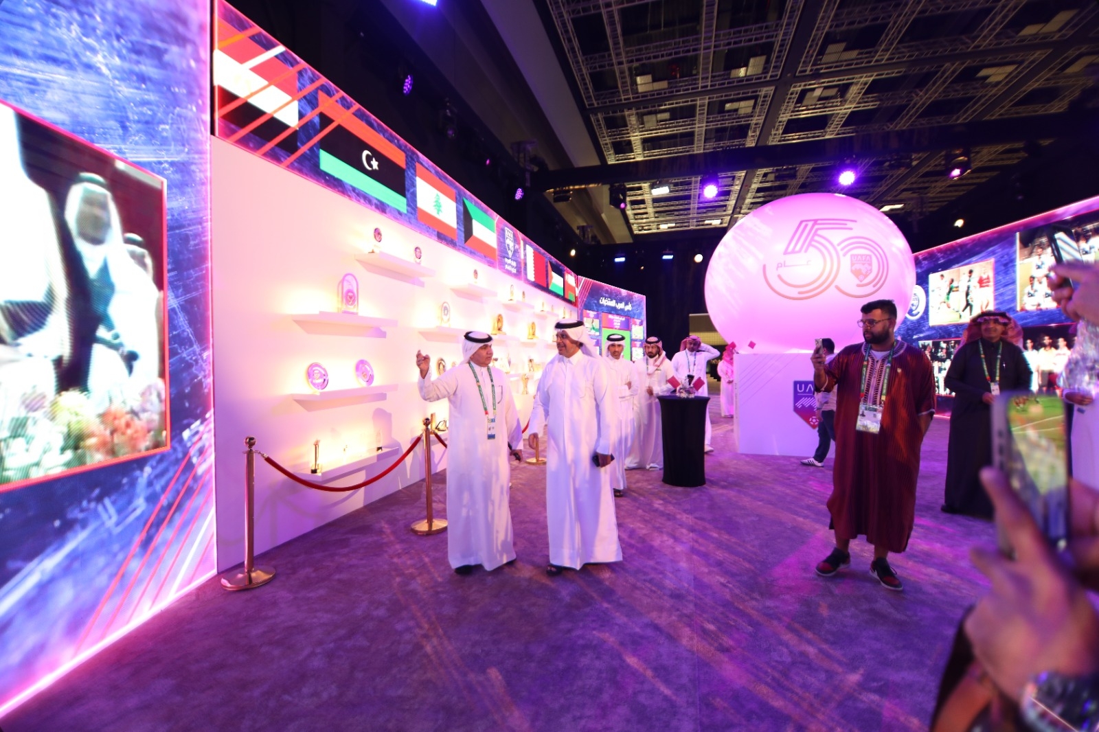 ويحظى المعرض منذ تدشينه، الأربعاء، بحضور كبير من وسائل الإعلام المختلفة للاطلاع على ما يحويه المعرض الذي يسلط الضوء على مسيرة الاتحاد العربي لكرة القدم عبر نصف قرن منذ تأسيسه عام 1974.رئيس لجنة الإعلام الرياضي القطري يشيد بـ “معرض الاتحاد العربي”