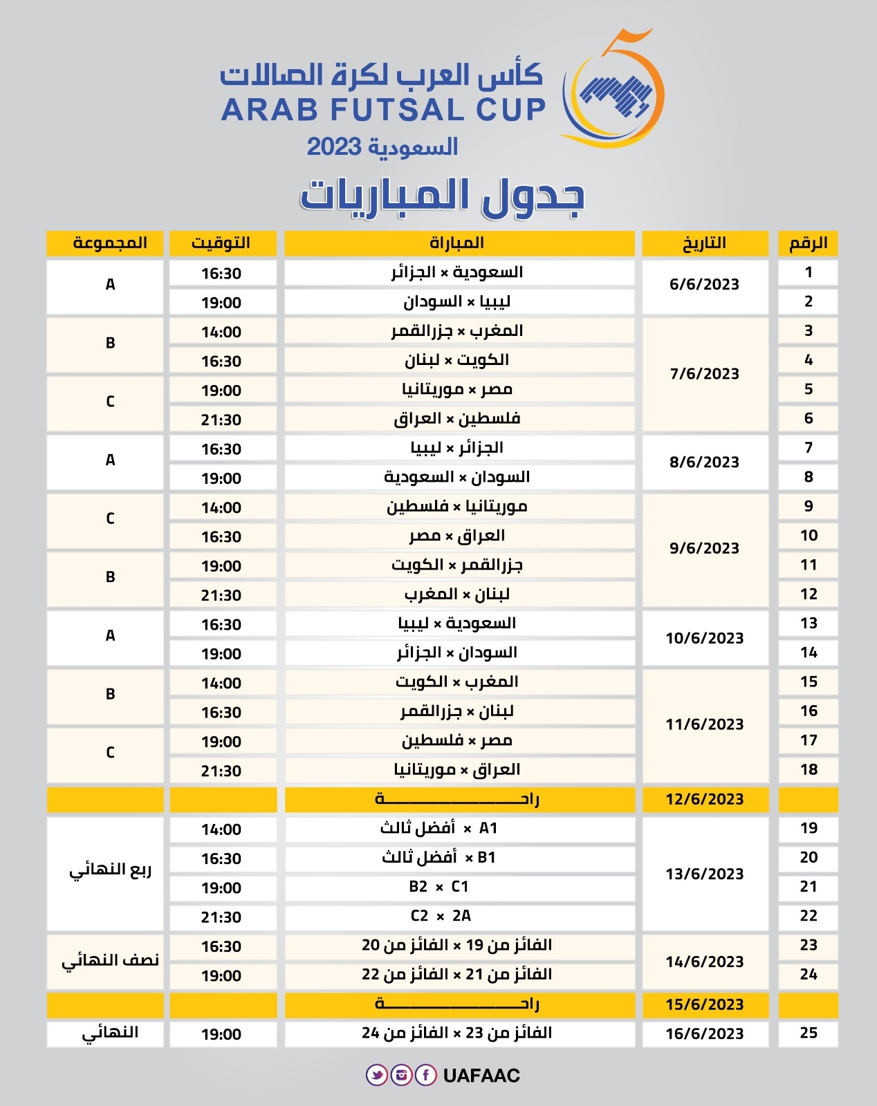 This morning, in Jeddah, Saudi Arabia, the draw of the seventh edition of the Arab Futsal up 2023 for national teams was held, which will be organized by the Union of Arab Football Associations and hosted by the Saudi Arabian Football Federation, from 6 to 16 June.